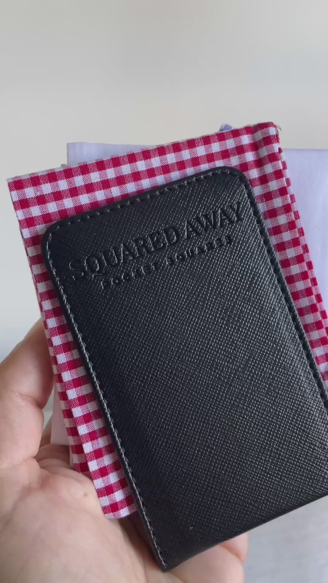 Squared Away’s premium magnetic pocket square holder eliminates sinking, slipping, and bunching. Guaranteed.